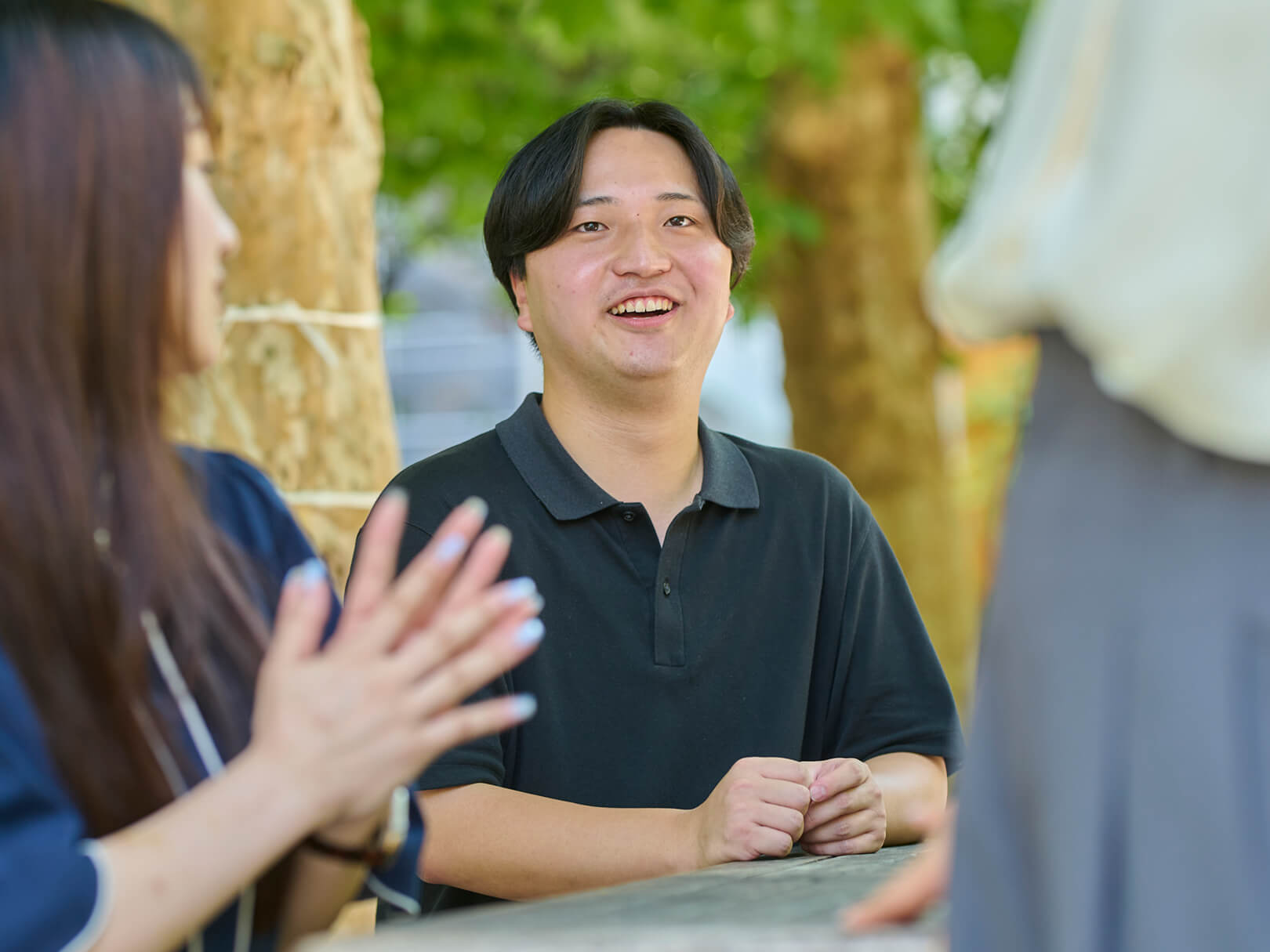 仕事もしっかりしつつ、プライベートも充実させたいので、「休みを取りやすい環境」であること、プログラミングだけではなく、お客様から直接ヒアリングして、要件定義・設計の部分にも関わりたいと思い、「下流工程だけではなく上流工程も行っている」企業を探していました。また、選考時に特に意識していたのは「笑顔」ですね!